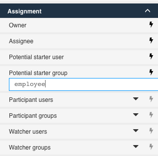 As we need to know the person organizing the travel, we add that selection to the start form of the case and then use it as the assignee for organizing the travel task.