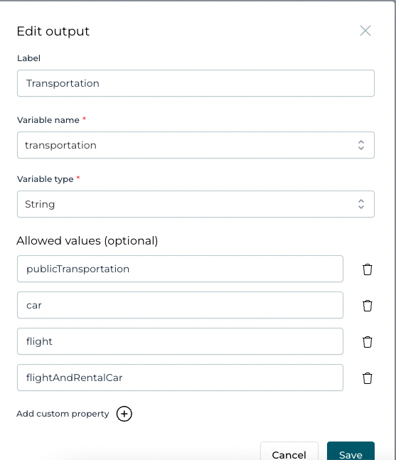 As you can see, we can use our previously defined transportation options, so it is easier to use those values within our table later on.