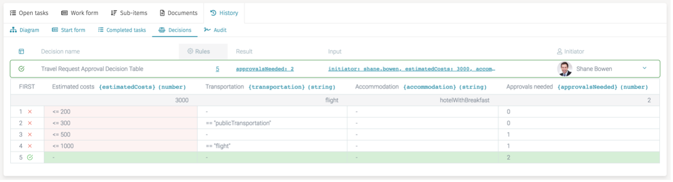 In the next step, we want to define a DMN based decision table to evaluate if and how many approvals we need for the travel request.
