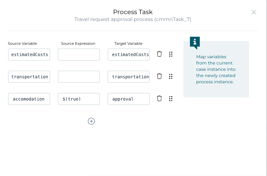 Travel request approval process task and open the Process Task - Variable Mapping>In variable mapping